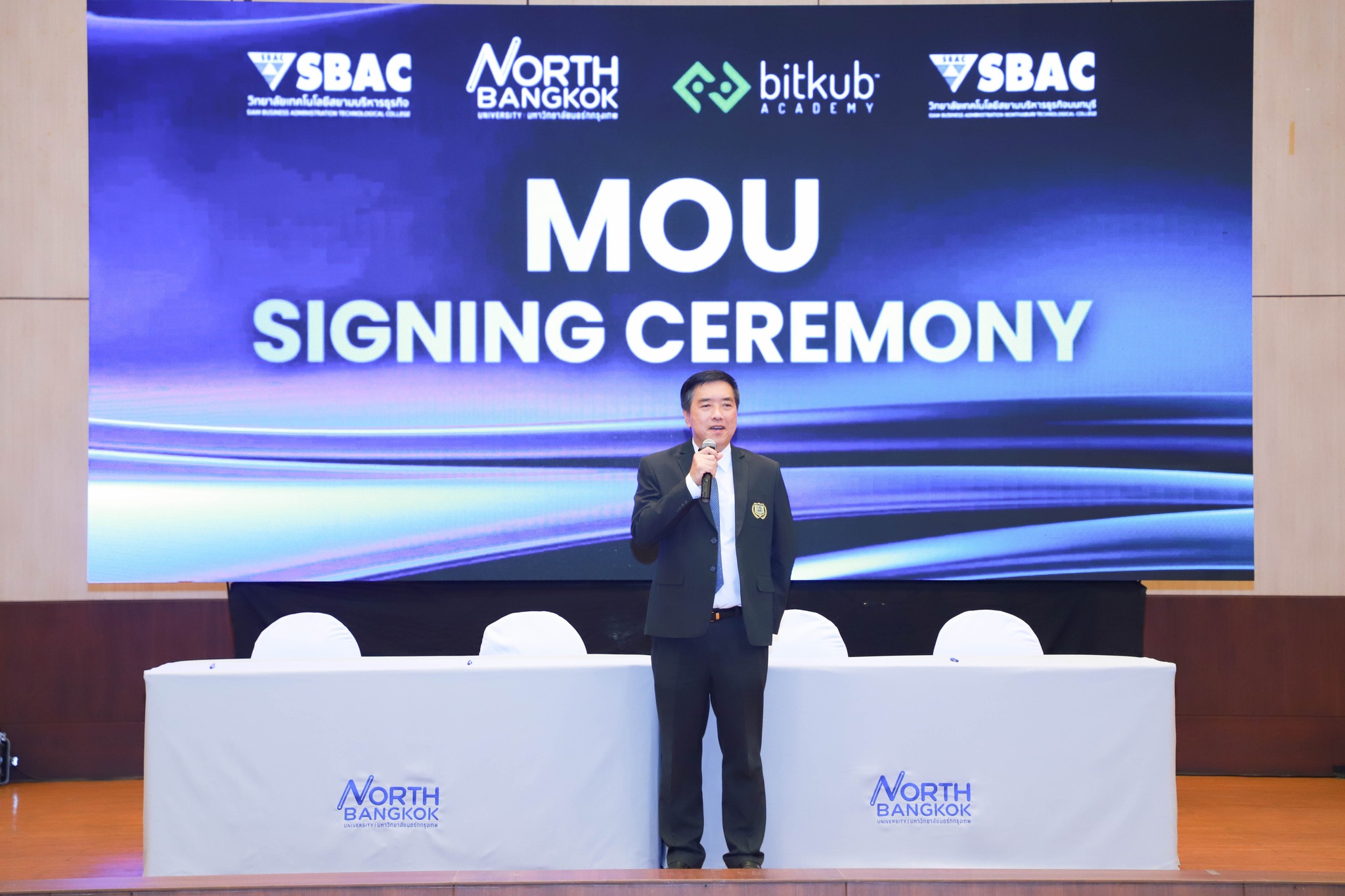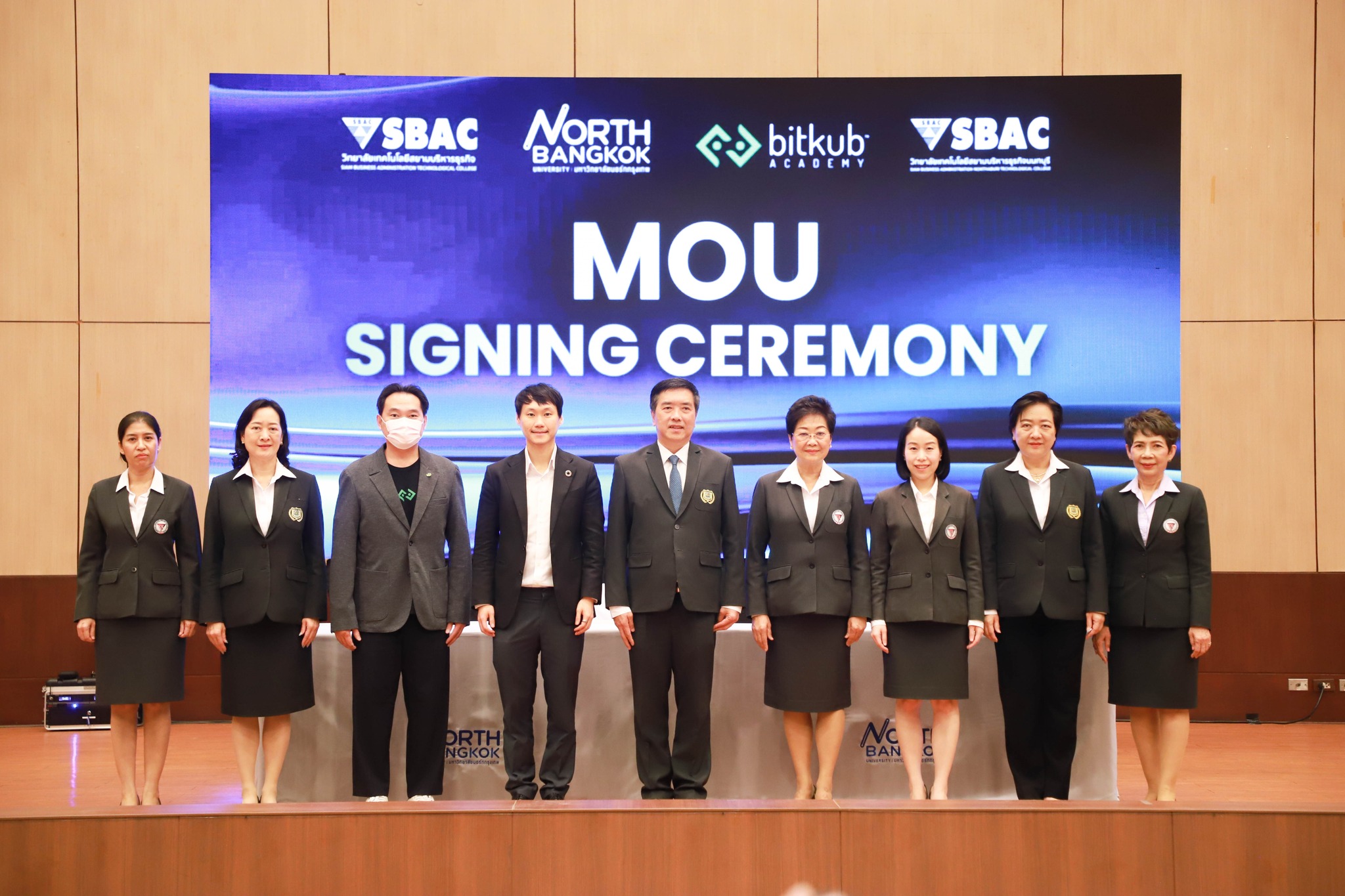 มหาวิทยาลัยนอร์ทกรุงเทพ (North Bangkok University) และ บริษัท บิทคับ แคปปิตอล กรุ๊ป โฮลดิ้งส์ จำกัด (Bitkub Capital Group Holdings) ผู้นำด้านธุรกิจสินทรัพย์ดิจิทัลและเทคโนโลยีบล็อกเชนของไทย ได้ลงนามบันทึกข้อตกลงความร่วมมือ (MOU) อย่างเป็นทางการ ด้วยวิสัยทัศน์อันกว้างไกลในการยกระดับการศึกษา พัฒนาหลักสูตรให้สอดคล้องกับโลกยุคดิจิทัล และเสริมสร้างศักยภาพของนักศึกษาให้เป็นบุคลากรคุณภาพแห่งอนาคต