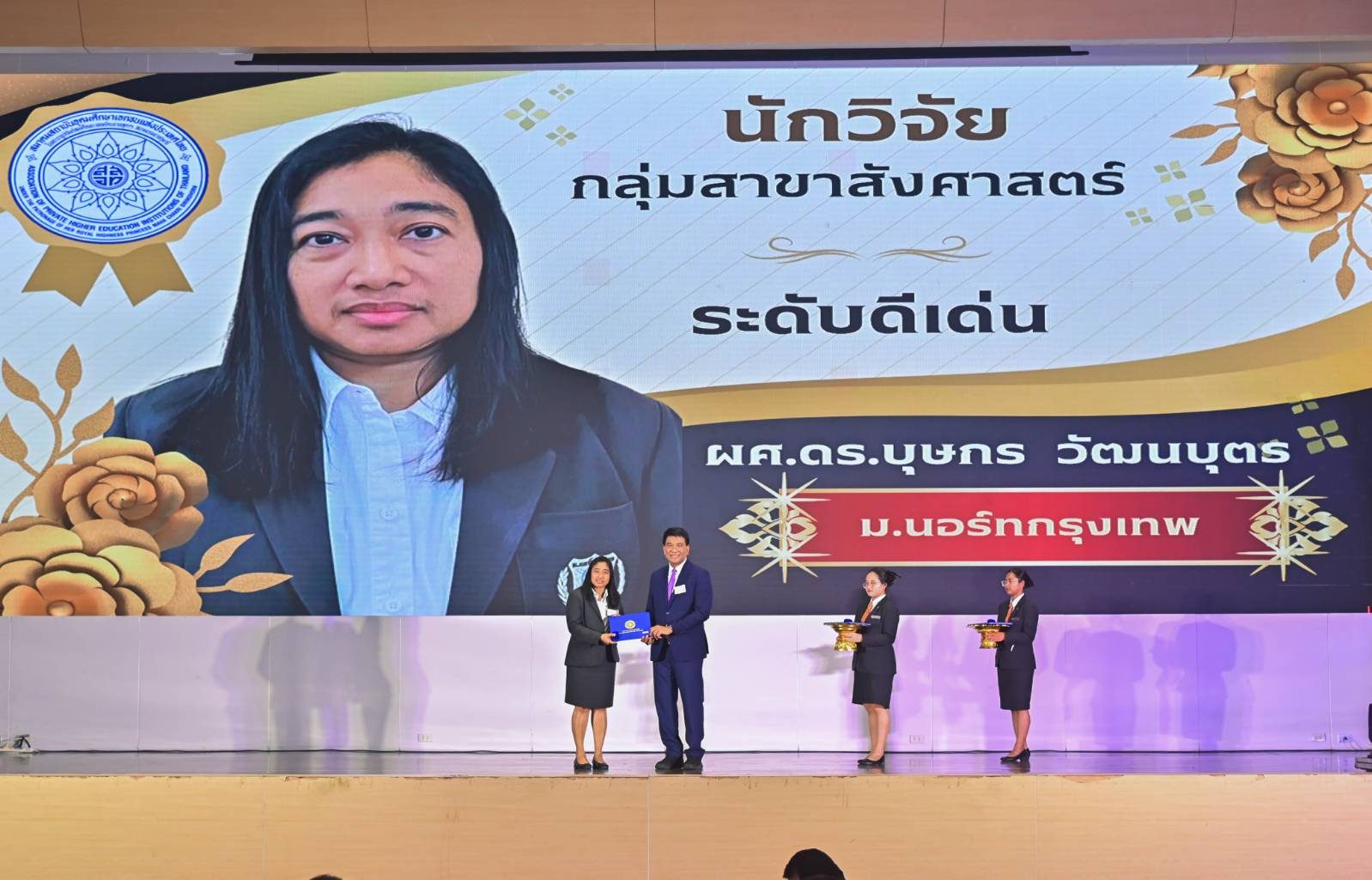 ผู้ช่วยศาสตราจารย์ ดร.บุษกร วัฒนบุตร ผู้อำนวยการหลักสูตรปรัชญาดุษฎีบัณฑิต และศิลปศาสตรมหาบัณฑิต สาขาวิชาการพัฒนาธุรกิจและทุนมนุษย์ คณะศิลปศาสตร์ มหาวิทยาลัยนอร์ทกรุงเทพ ได้รับรางวัลนักวิจัย กลุ่มสาขาสังคมศาสตร์ ระดับดีเด่น ประจำปีการศึกษา 2567