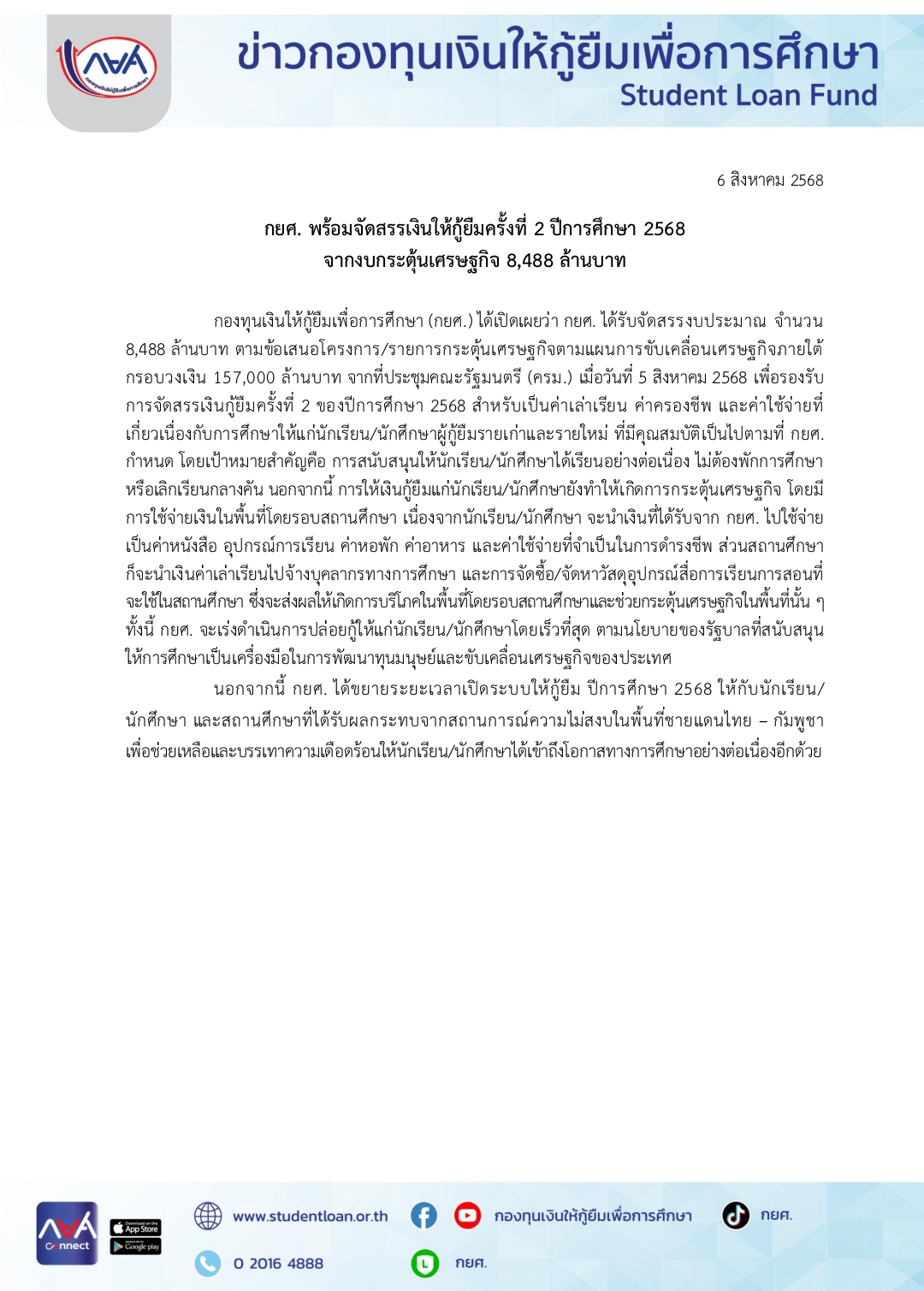 ประกาศ เรื่อง "กยศ."
