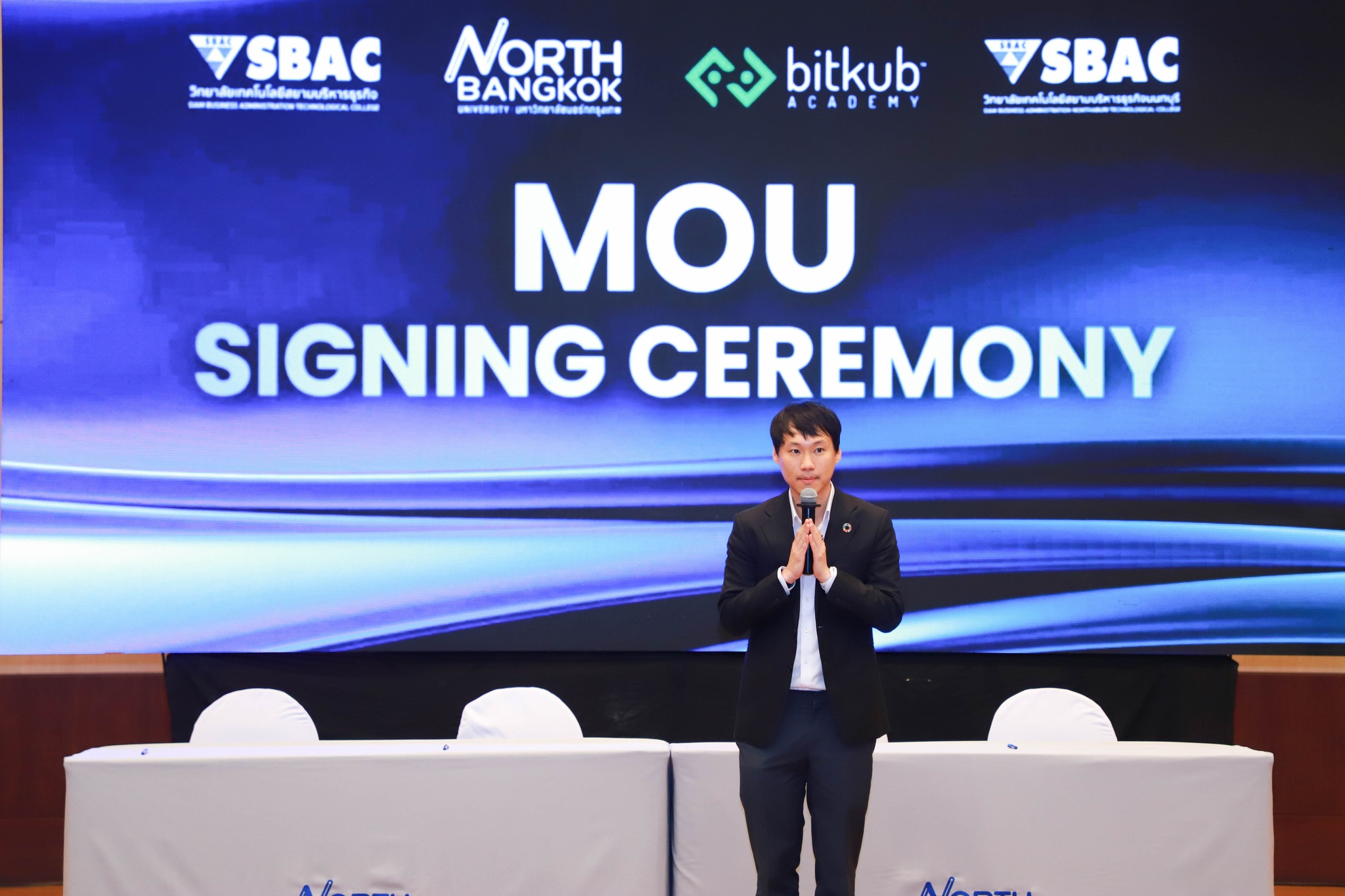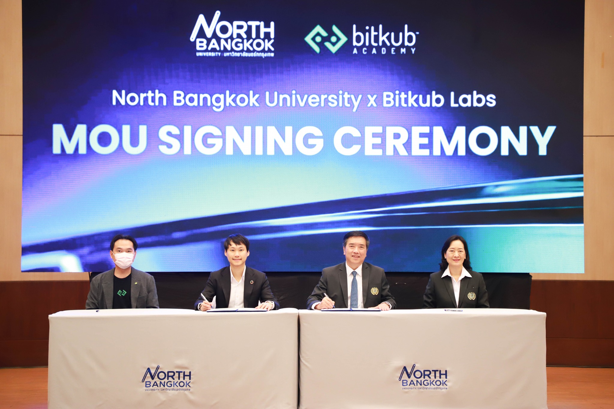 มหาวิทยาลัยนอร์ทกรุงเทพ (North Bangkok University) และ บริษัท บิทคับ แคปปิตอล กรุ๊ป โฮลดิ้งส์ จำกัด (Bitkub Capital Group Holdings) ผู้นำด้านธุรกิจสินทรัพย์ดิจิทัลและเทคโนโลยีบล็อกเชนของไทย ได้ลงนามบันทึกข้อตกลงความร่วมมือ (MOU) อย่างเป็นทางการ ด้วยวิสัยทัศน์อันกว้างไกลในการยกระดับการศึกษา พัฒนาหลักสูตรให้สอดคล้องกับโลกยุคดิจิทัล และเสริมสร้างศักยภาพของนักศึกษาให้เป็นบุคลากรคุณภาพแห่งอนาคต