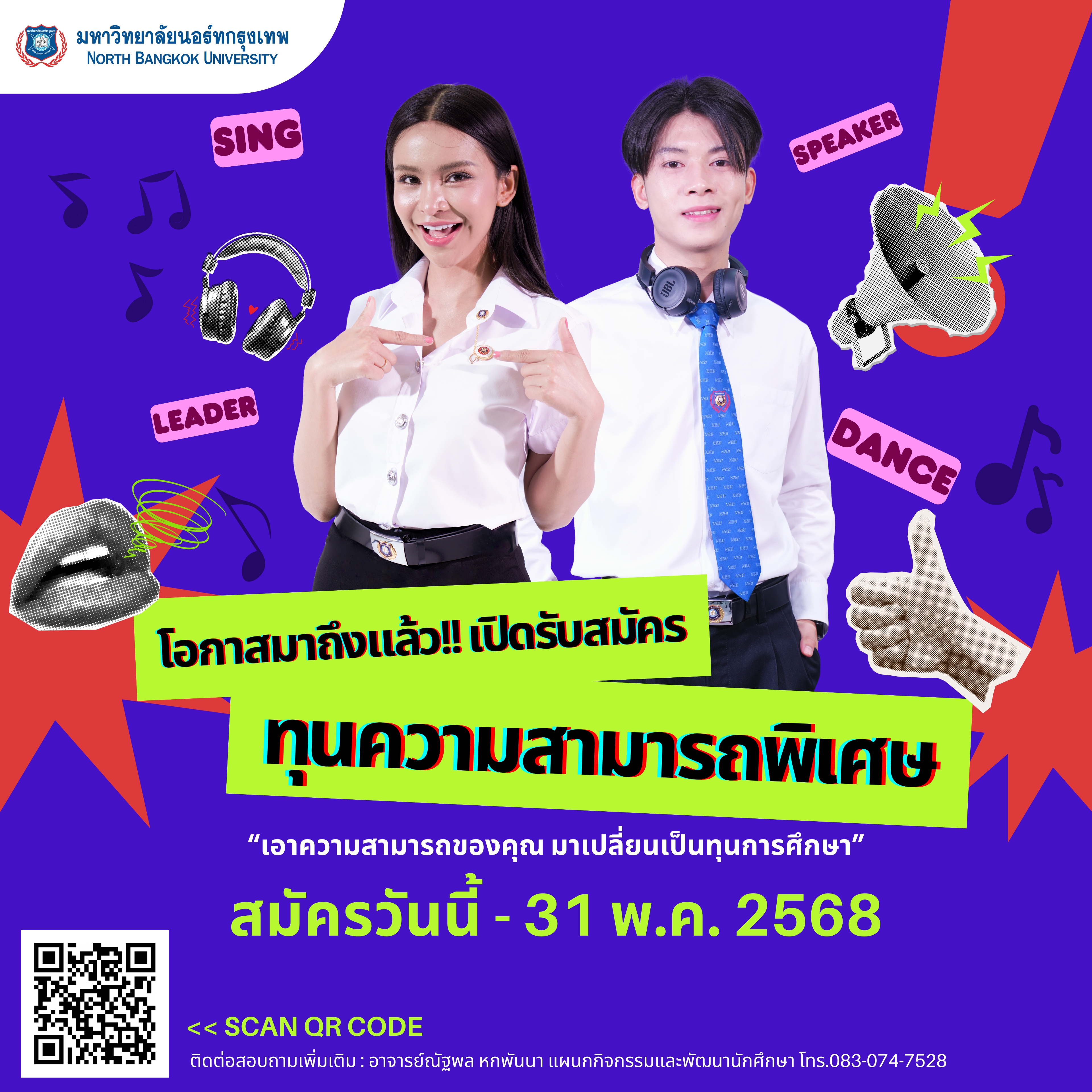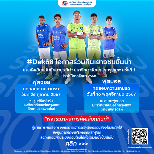 มหาวิทยาลัยนอร์กรุงเทพ เปิดรับสมัครคัดเลือกนักศึกษาทุนนักกีฬา ครั้งที่ 1 ประจำปีการศึกษา 2568 ชิงทุนเรียนฟรีตลอดหลักสูตรสูงสุด 100%