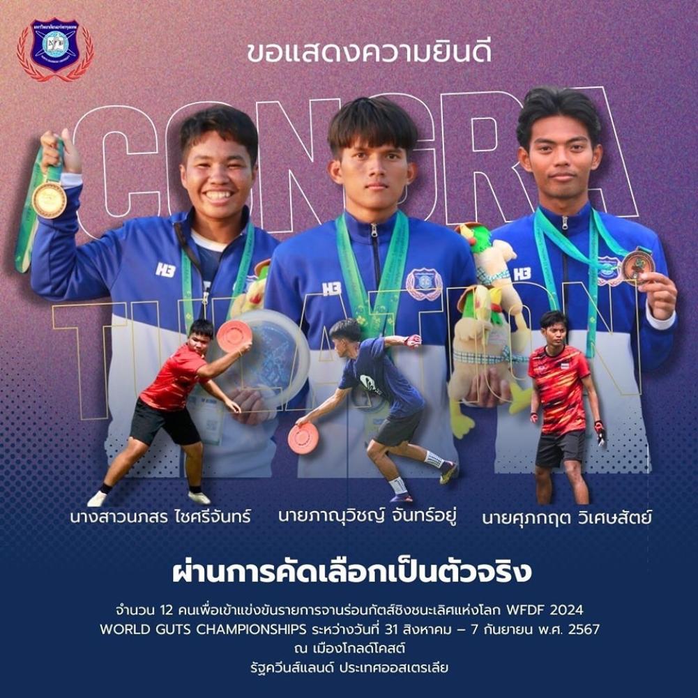 นักศึกษาและศิษย์เก่า ม.นอร์ทกรุงเทพ ได้รับการคัดเลือกเป็นนักกีฬาจานร่อนกัตส์ทีมชาติไทย เพื่อเข้าแข่งขันรายการจานร่อนกัตส์ชิงชนะเลิศแห่งโลก WFDF 2024 World Guts Championships