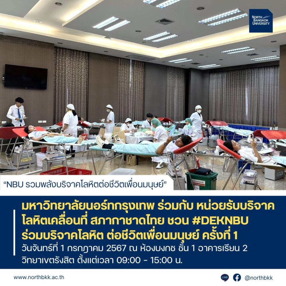 มหาวิทยาลัยนอร์ทกรุงเทพ ร่วมกับ หน่วยรับบริจาคโลหิตเคลื่อนที่ สภากาชาดไทย จัดกิจกรรมบริจาคโลหิต ต่อชีวิตเพื่อนมนุษย์ ครั้งที่ 1