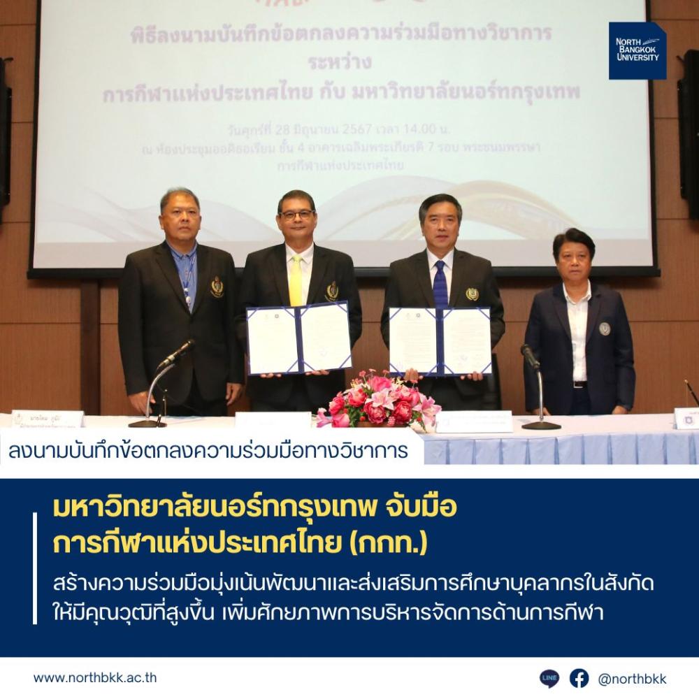 มหาวิทยาลัยนอร์ทกรุงเทพ จับมือ การกีฬาแห่งประเทศไทย (กกท.) สร้างความร่วมมือมุ่งเน้นพัฒนาและส่งเสริมการศึกษาบุคลากรในสังกัด กกท. ให้มีคุณวุฒิที่สูงขึ้น เพิ่มศักยภาพการบริหารจัดการด้านการกีฬา