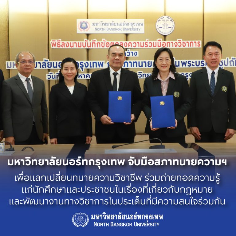 มหาวิทยาลัยนอร์ทกรุงเทพจับมือสภาทนายความในพระบรมราชูปถัมภ์ เสริมสร้างองค์ความรู้ทางการศึกษา แก่นักศึกษามหาวิทยาลัยนอร์ทกรุงเทพโดยทนายวิชาชีพ