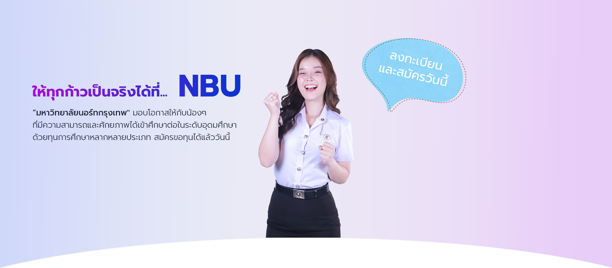 มหาวิทยาลัยนอร์ทกรุงเทพ สนับสนุนและส่งเสริมน้องๆ นักเรียน นักศึกษา ที่มีผลการเรียนดี มีความสามารถพิเศษ และมีความประพฤติดี เพื่อพัฒนาศักยภาพเยาวชนรุ่นใหม่ให้เป็นมืออาชีพ จึงเปิดโอกาสให้น้องๆ ระดับมัธยมศึกษาตอนปลาย และอาชีวศึกษา ที่มีความสามารถด้านต่างๆ สามารถขอรับทุนการศึกษา เพื่อเข้าศึกษาระดับปริญญาตรี มหาวิทยาลัยนอร์ทกรุงเทพ มูลค่าสูงสุด 100% ตลอดหลักสูตร